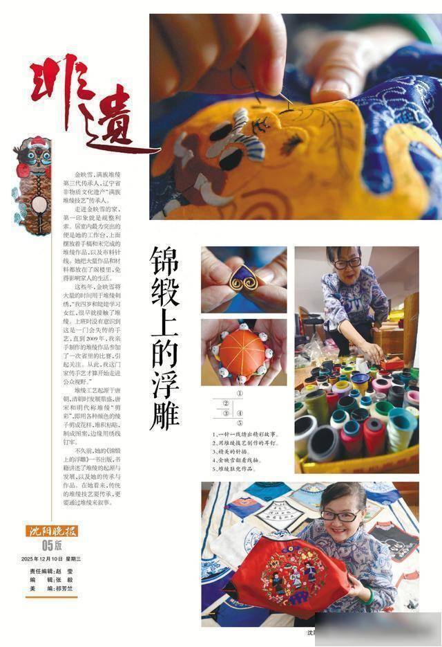 金映雪,满族堆绫第三代传承东说念主,辽宁省非物资文化遗产“满族堆绫武艺”传承东说念主。